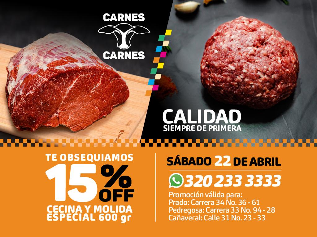 Ven a nuestros punto de venta en Cañaveral, Prado y Pedregosa y disfruta de un 15% de DESCUENTO en CECINA y MOLIDA ESPECIAL de 600 gr ¡Válido solo por este sábado 22 de Abril!